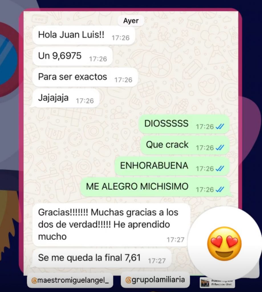 “Muchísimas gracias por todo! La verdad es que he aprendido más este año que en 4 de carrera, ya solo por eso ha merecido la pena 🥰🥰”