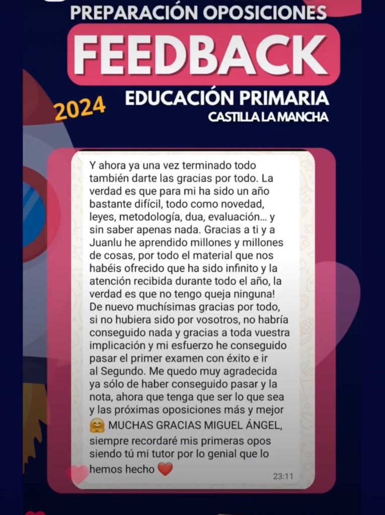 Por fin!! Se acabo, largo y duro proceso de la mano del mejor. Hemos pasado por momentos en los que la única salida era abandonar pero eso no podía ser porque cada viernes recibíamos tus ánimos. Gracias por los ánimos, por las horas que me nos has dedicado y por hacer este proceso tan humano. Ahora solo queda esperar ver los resultado 🤞🏼 gracias gracias y gracias. Una preparación para recomendar al 100%